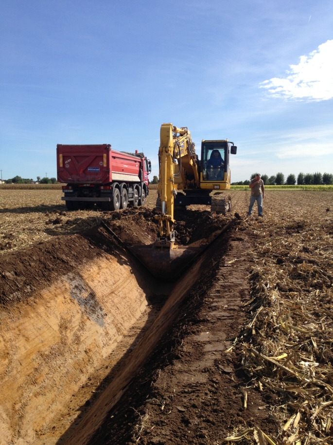 Scavi, microscavi, creazione e pulizia fossi, sbancamenti, demolizioni civili e industriali, fornitura materiale edile e tutto ciò che ruota attorno al mondo del movimento terra e del materiale inerte.